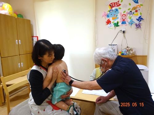 本日(5/15)、こども園及び乳児保育園に、園内科医の外間先生にお越しいただき、園児たちの内科健診を行いました。