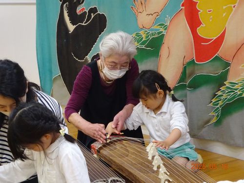 昨日(5/16)から、今年度も姫井先生をはじめお琴の先生をお招きして、うめ組(5歳児)の琴のお稽古が始まりました。