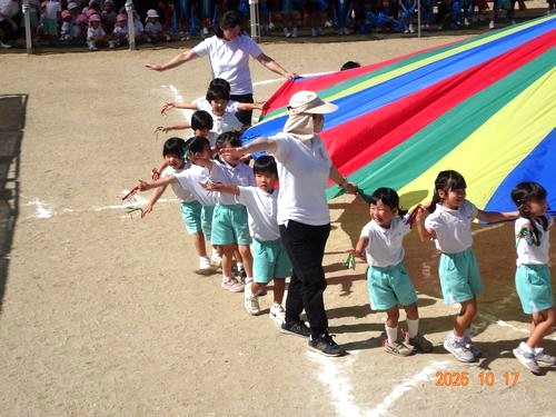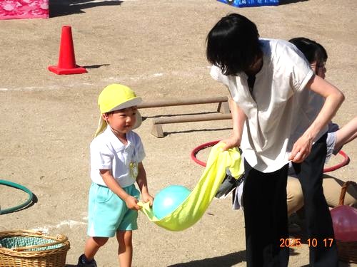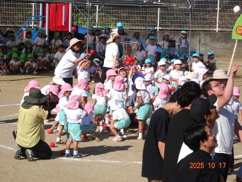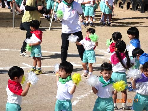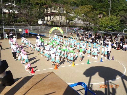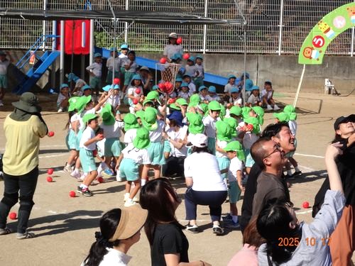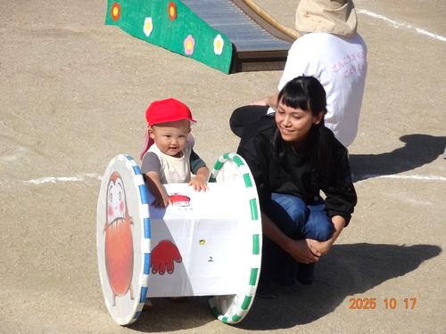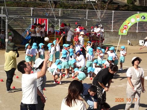 本日(10/17)、こども園の園庭でこども園と乳児保育園合同のなかよし運動会を行いました。