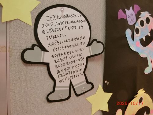 この文化祭は、両日とも午前10時から午後4時の間の開催で、作品は、金光公民館1階の視聴覚室で展示されていますので、ぜひ園児たちの力作をご覧に公民館にお出かけください。