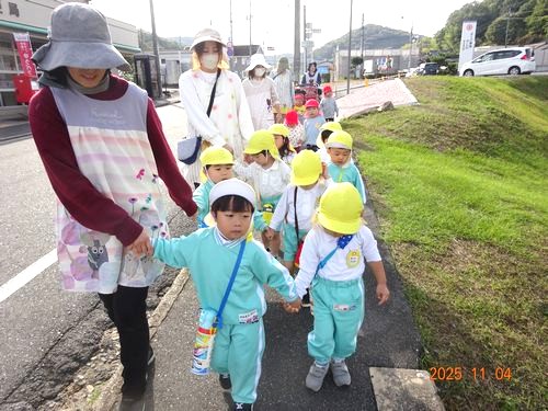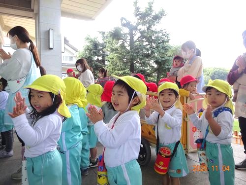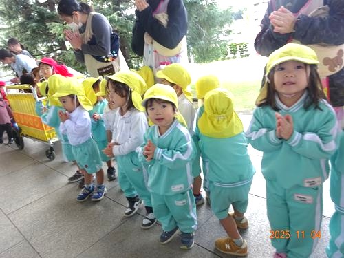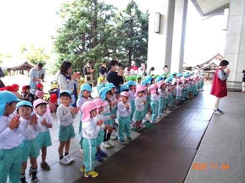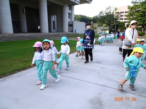 昨日(11/4)、こども園と乳児保育園の園児たちが、11月月初めの金光教本部参拝に行きました。