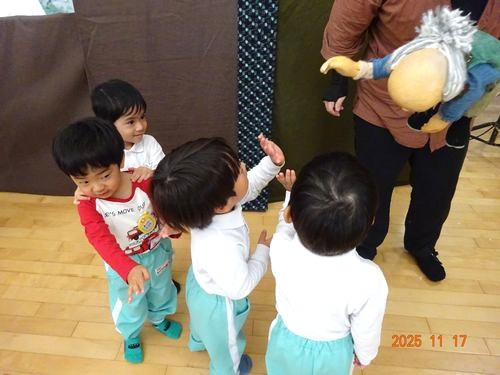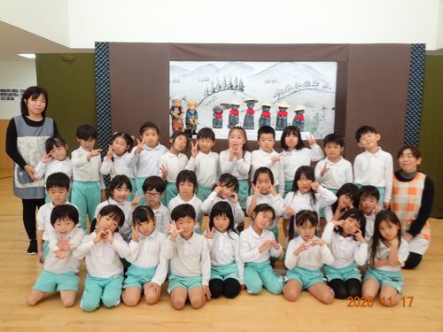 園児たちは、「今日、人形劇!」とワクワクしながら登園し、この日を楽しみにしていました。