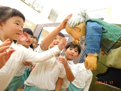 公演が終わった後には、各クラスで写真撮影をしたり、人形と触れ合ったりと、とても楽しい時間を過ごすことができました。