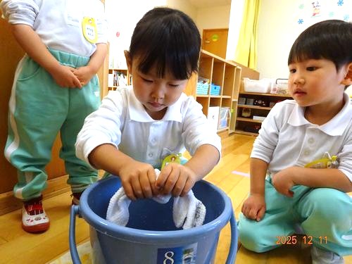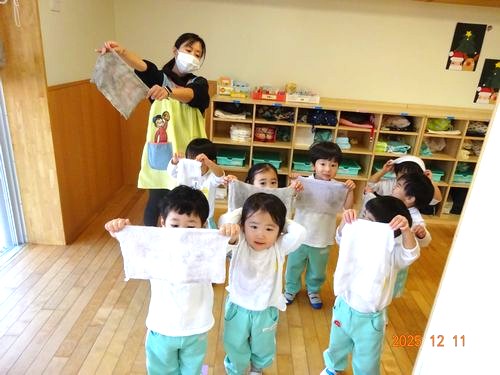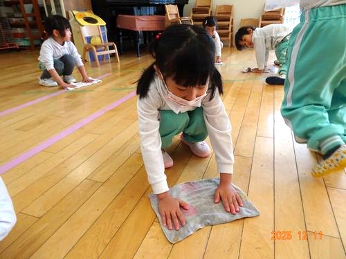 ご家庭でも園児と一緒に年末の大掃除をして、気持ちの良い 新年を迎えて頂きたいと思います。