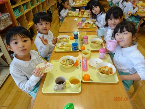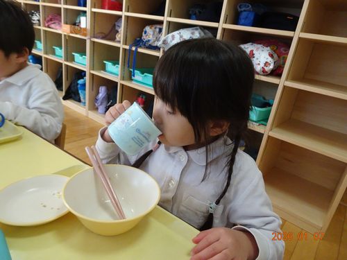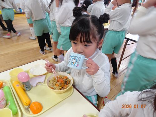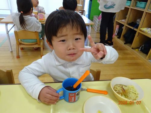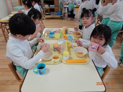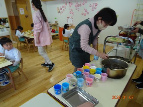 昨日(1/7)、園児たちにぜんざいが振舞われました。