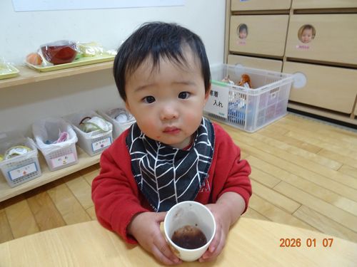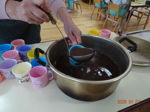 園児たちは、小豆の香りのする甘いお汁をおいしそうに頂いていました。