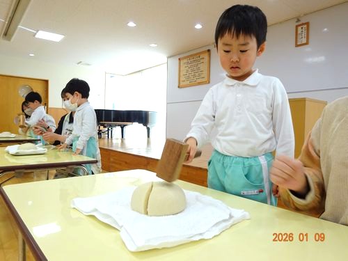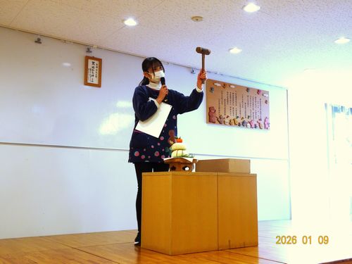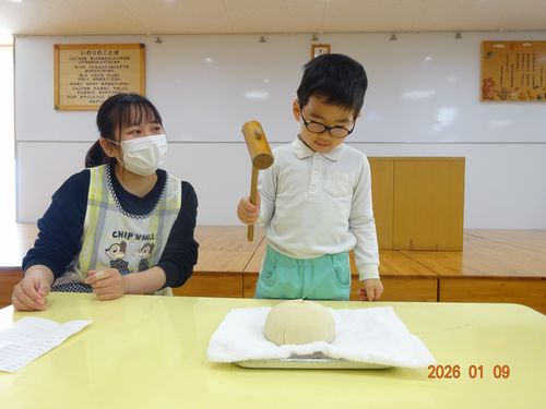 昨日(1/9)、こども園で鏡開きをしました。