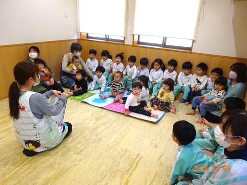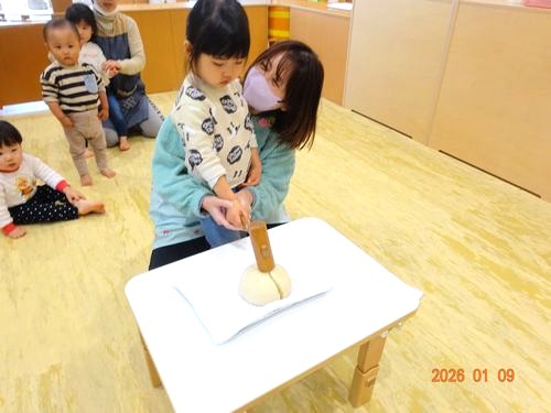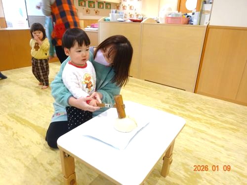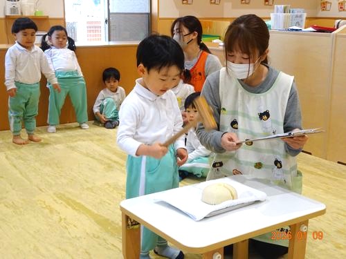 昨日(1/9)、乳児保育園で鏡開きをしました。