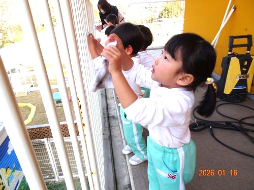 隅々まで拭き掃除をして、テラスがきれいになりました。これからも園児たちと、しっかりと園内外をきれいにしていきたいと思います。