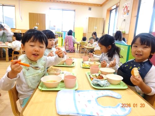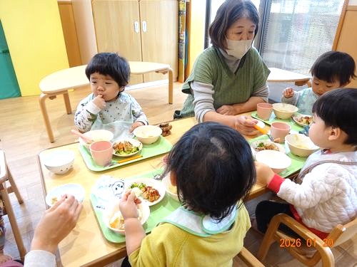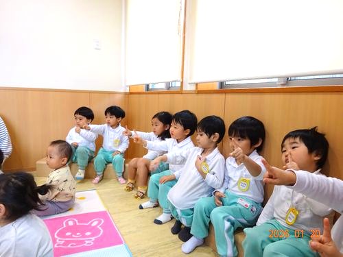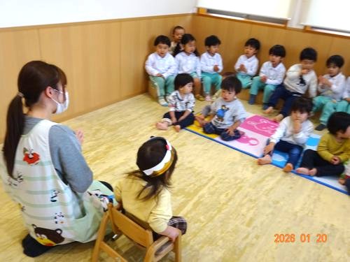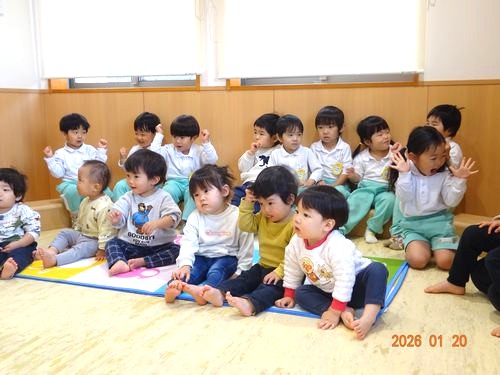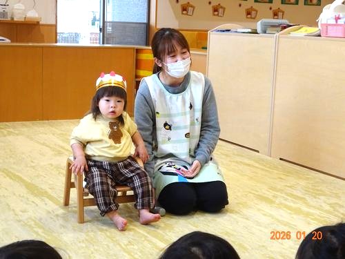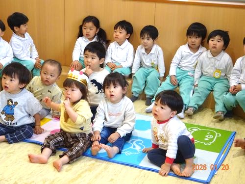 本日(1/20)、乳児保育園で1月生まれのお友だちをお祝いする誕生会を行いました。
