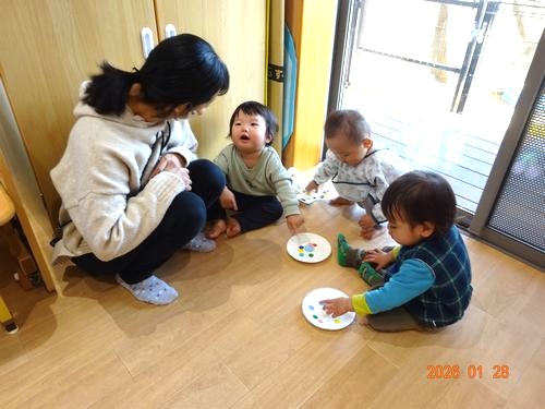昨日(1/28)は、1月の未就園児親子登園日でした。