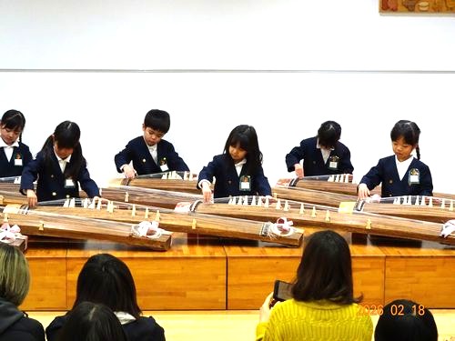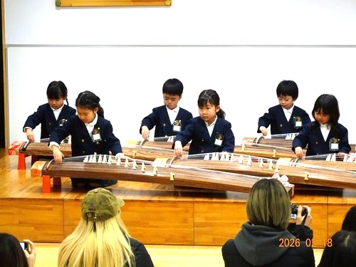 大勢の保護者の皆さんを前に、もも1・2組(3歳児)とさくら組(4歳児)は合奏と合唱を、うめ組(5歳児)はお琴の演奏と合奏、合唱の発表をしました。