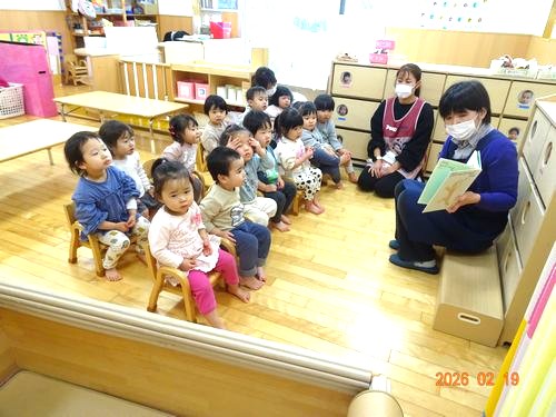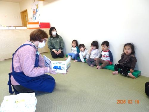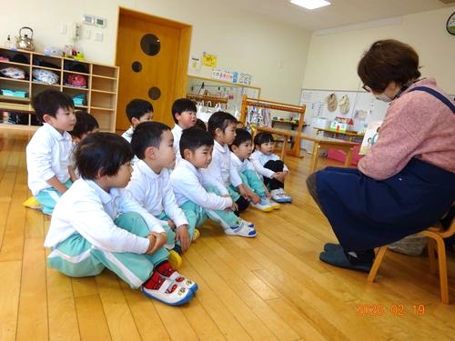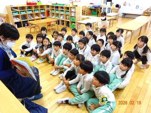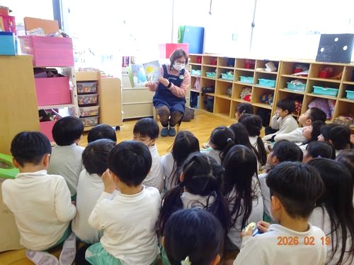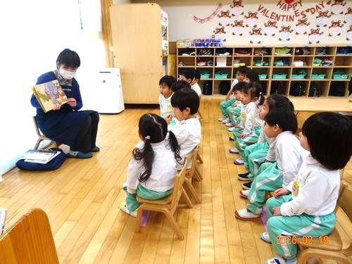 本日(2/19)、金光図書館の職員の方がこども園にお越しになり、絵本の読み聞かせをしてくださいました。