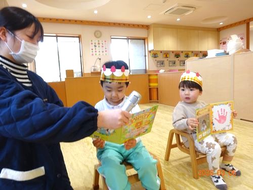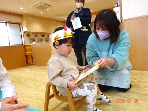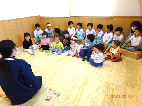 本日(3/5)に、乳児保育園で3月生まれの誕生会を行いました。