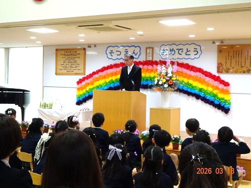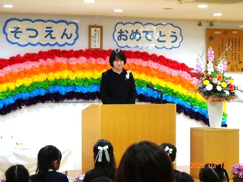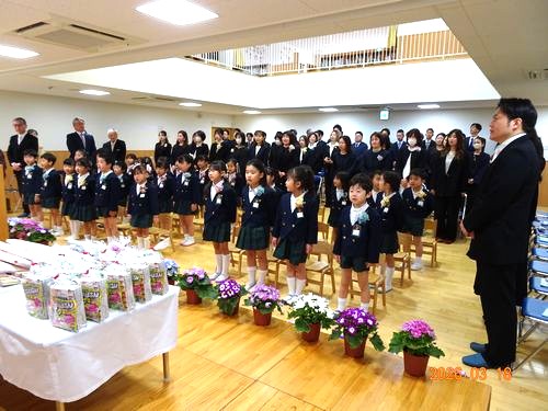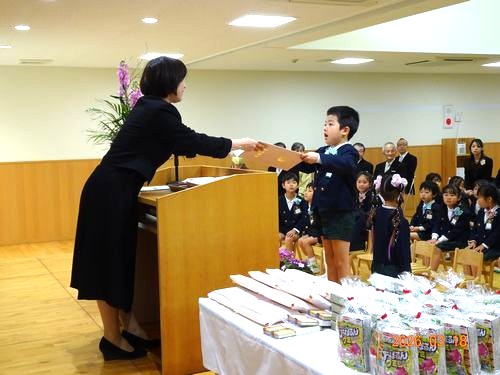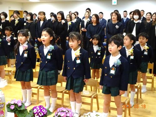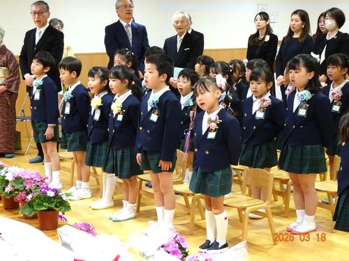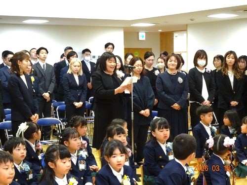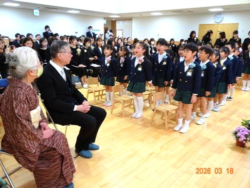 本日(3/18)、こども園の遊戯室で第113回卒園証書授与式を挙行し、30人の園児たちが卒園しました。