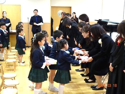 本日(3/18)の卒園式後に、卒園した園児と保護者の皆さんにより『ありがとうの会』を催してくださいました。