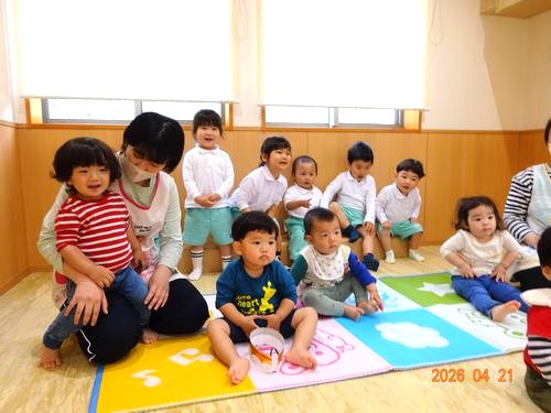 昨日(4/21)、乳児保育園で4月生まれのお友だちをお祝いする誕生会を行いました。
