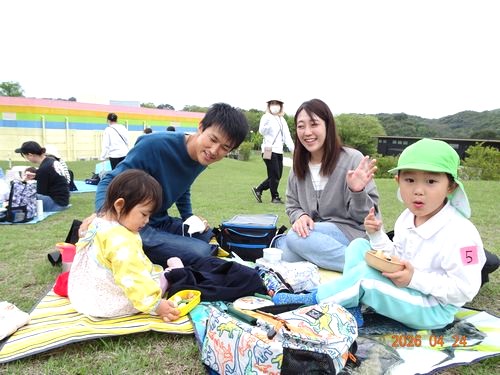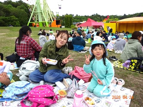 6台の観光バスに分乗し、行きの車中は、自己紹介やクイズをしながら楽しくバス旅行を楽しみました。おもちゃ王国到着後、芝生広場に荷物を置いて、おまちかねの自由行動に!園児たちは、保護者の皆さんやお友だちと一緒にアトラクションやおもちゃパビリオンで楽しい時間を過ごしました。遊んだ後は、お待ちかねのお弁当タイムです。ご家庭の手作り弁当を芝生広場にシートを敷いて、美味しくいただきました。