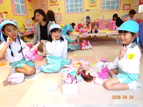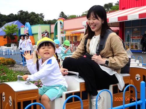 昨日(4/24)、こども園と乳児保育園合同で玉野市のおもちゃ王国へ親子バス遠足に行きました。
